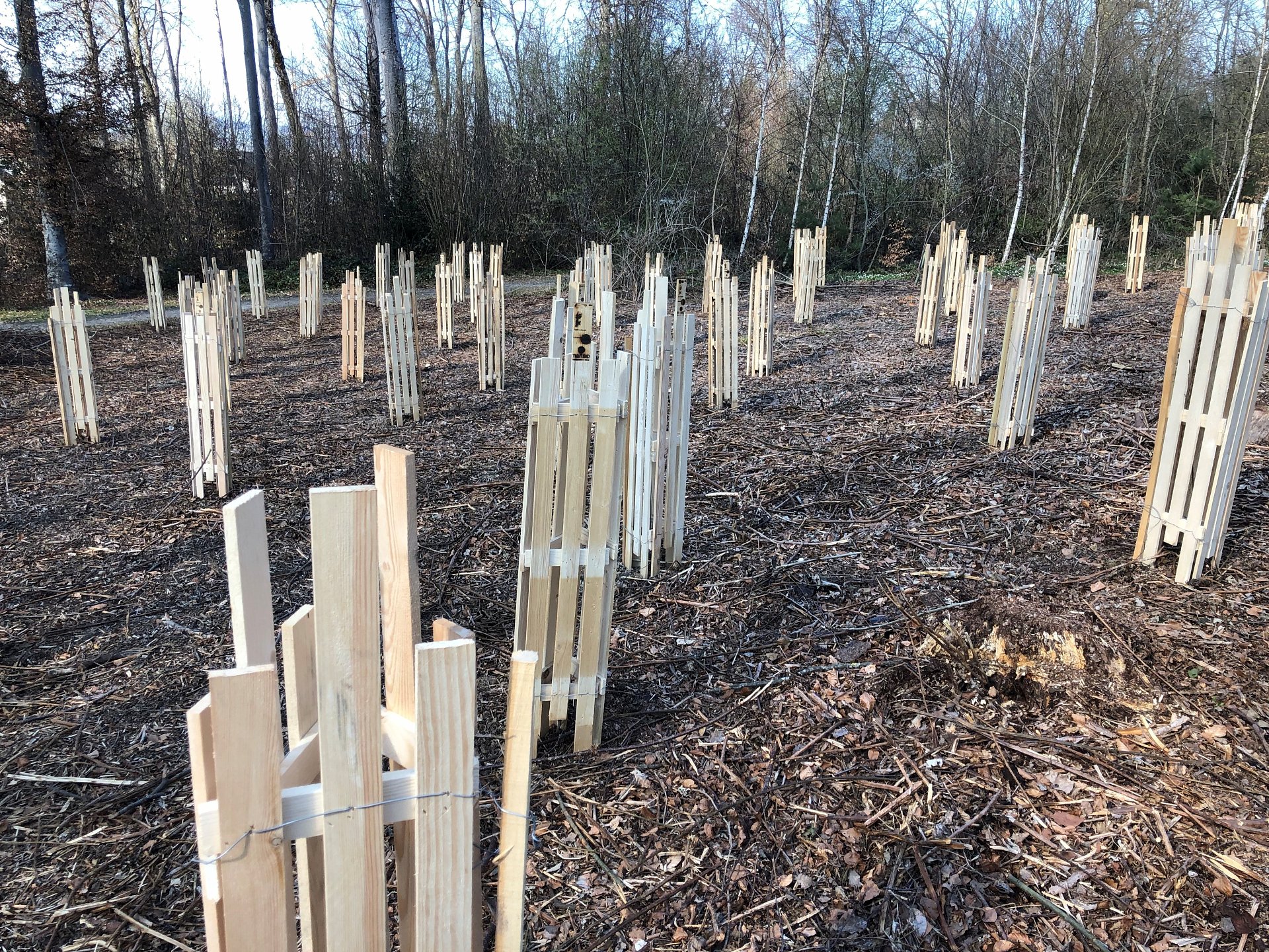 In der Regel nach einem Holzschlag oder einer Kahlfläche durch Sturm oder Borkenkäfer ist eine Waldfläche neu zu begründen. Dies geschieht entweder durch die Natur selbst als sogenannte Naturverjüngung durch Samen oder eben durch eine künstliche Pflanzung. Wir führen Pflanzungen im Auftrag für Waldeigentümer und Dritte aus und bringen auch gleich den Wildschutz an.